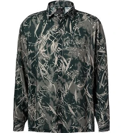 Armani Exchange Hemd, Loose Fit, Viskose, Grün Gemustert