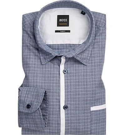 Boss Hemd, Slim Fit, Baumwolle, Dunkelblau-weiß Meliert
