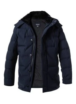 Mit einem heraustrennbaren Kunstfellbesatz am Kragen und einer abnehmbaren Kapuze, lässt sich der Look individuell gestalten. Das komfortable Modell begeistert mit wärmenden Eigenschaften und erweist sich mit gepresster Steppoptik, als sportiver Begleiter in Ihrer Casual-Wear.