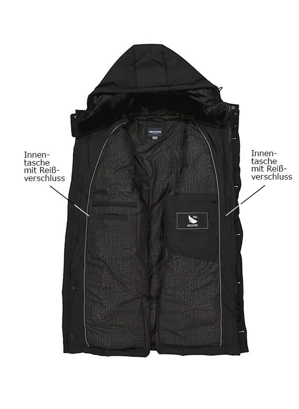 Mit einem heraustrennbaren Kunstfellbesatz am Kragen und einer abnehmbaren Kapuze, lässt sich der Look individuell gestalten. Das komfortable Modell begeistert mit wärmenden Eigenschaften und erweist sich mit gepresster Steppoptik, als sportiver Begleiter in Ihrer Casual-Wear.