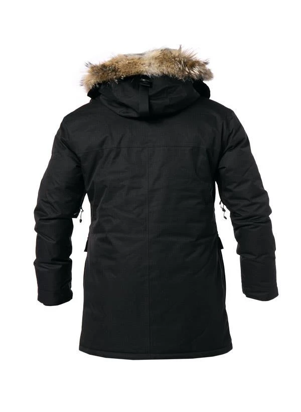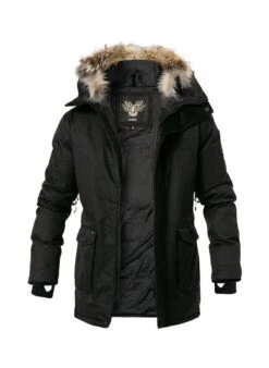 Ein unverzichtbarer Allrounder in der kalten Jahreszeit ist dieser Daunenparka. Das hochwertige Modell besticht durch eine ausgezeichnete Verarbeitung und mit etlichen Features. Die hochwertige Daunenfüllung sowie die wind- und wasserabweisenden Eigenschaften halten auch bei niedrigsten Temperaturen warm. Zudem schützen eng anliegende Ärmelbündchen sowie ein hochabschließender Kragen vor Kälte. Der Echtfellbesatz an der Kapuze verleiht dem ansonsten schlichten Design eine edle Note.