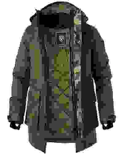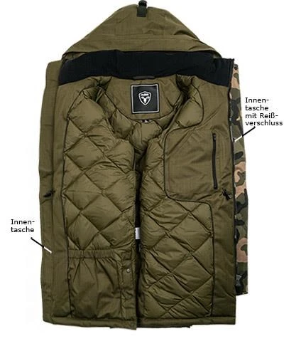 Urban Look der Extraklasse: Der wärmende Daunenparka eignet sich hervorragend als zuverlässiger Begleiter an kalten Tagen. Die mit Daunen gefütterte Jacke ist mit einer abnehmbaren Kapuze und großen Taschen versehen. Das wind- sowie wasserabweisende Material in matter Optik bietet zuverlässigen Schutz bei jedem Wetter. So können die kalten Tage kommen!