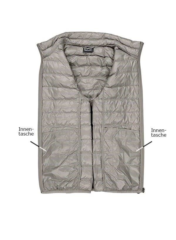 Sportiv im Design und modisch. Mit hochwertiger Daune gefüllt ist diese Steppweste super leicht. Mit Logo Print auf der Brust und einer dezent schimmernden Optik wird daraus eine Designerweste im angesagten Look.