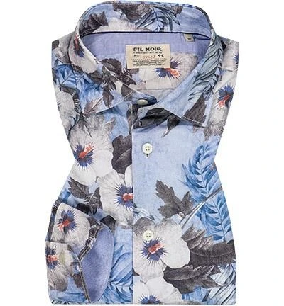 Hemd, Shaped Fit, Baumwolle, Blau Gemustert