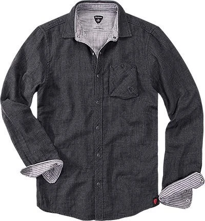 Lässiger geht’s nicht – das Hemd aus kernigem Doppelgewebe im Vintage-Look unterstreicht mit vielen sportiven Details den entspannten Lifestyle, der mit schmal geschnittener Jeans und Canvas-Sneakern abgerundet wird.
