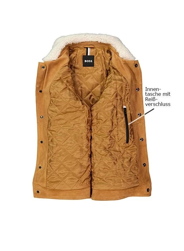 Diese Lederjacke beeindruckt mit einer hochwertigen Verarbeitung aus feinstem Ziegenvelours. Das Modell zeigt sich mit Druckknopfleiste, sowie aufgesetzten Taschen und wird mit einem Kragen aus Teddyfell abgerundet. Ergänzen Sie Ihre stylischen Casual-Kombinationen mit diesem Trend-Piece