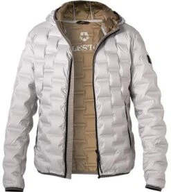 Diese Daunenjacke macht mit einer gepressten Steppoptik und einer hochwertigen Verarbeitung auf sich aufmerksam. Das Design mit gemütlicher Kapuze und Reißverschlusstaschen, punktet mit einer angenehmen Leichtigkeit und hervorragenden Tragekomfort, während die elastischen Kantenabschlüsse mit Logo Schriftzug, das Gesamtbild optisch abrunden.