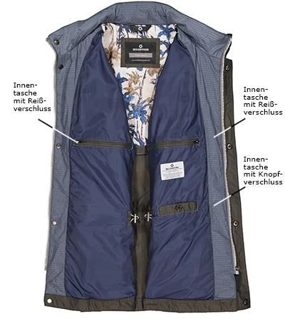 Im modernen Stil einer Fieldjacket präsentiert sich diese Jacke. Das Design mit typischen Pattentaschen auf der Brust und bequemen Reißverschlusstaschen, ist halbgefüttert und sorgt mit leichtem Gewicht und einer weitenregulierbaren Taille für einen angenehmen Tragekomfort.