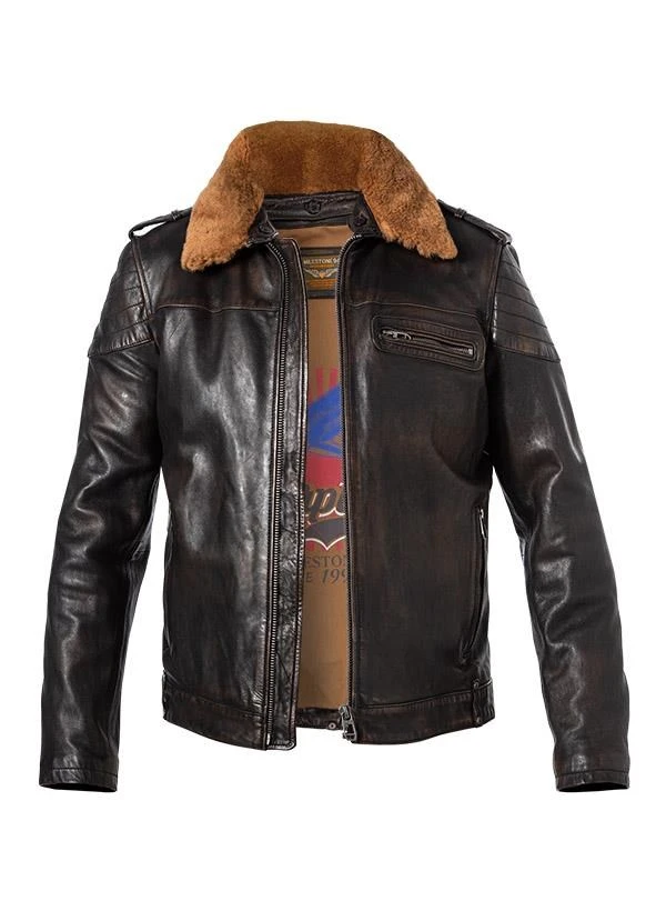 Diese kernige Lederjacke im modernen Vintage-Look ist aus hochwertigem Lammnappa gefertigt. Das moderne Design wird durch praktische Reißverschlusstaschen akzentuiert, das für individuelle Styling-Kombinationen sorgt. Das Gesamtbild wird finally durch einen abnehmbaren Lammfellkragen komplettiert.