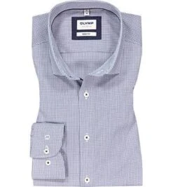 OLYMP Hemd, Body Fit, Baumwolle, Marine-weiß Kariert