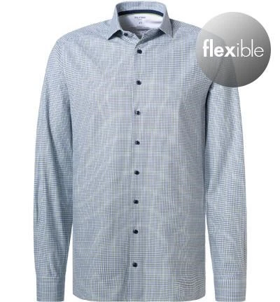 OLYMP Hemd, Modern Fit, Baumwoll-Stretch Geruchshemmend, Limone-blau Kariert