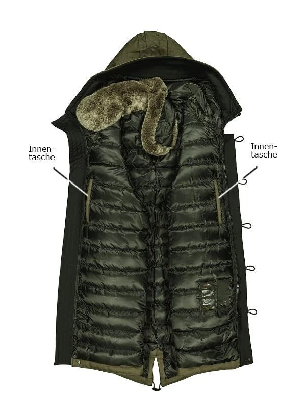 Einen wärmenden Komfort vermittelt Ihnen dieser Daunenparka in der kalten Saison allemal! Das hochwertig gearbeitete Modell begeistert mit einer wasserabweisenden Oberfläche aus Baumwoll-Mix und ist zudem mit einer Kapuze ausgestattet. Der abnehmbare Innenkragen aus Echtfell ergänzt den Komfort und verleiht Ihrem Look gleichzeitig eine stylishe Note. Für Herren, die viel Wert auf Qualität und Bequemlichkeit legen ist das Modell eine lohnenswerte Investition!