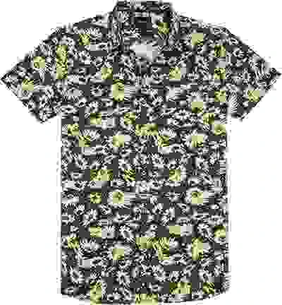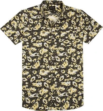 Quiksilver Kurzarmhemd, Tall Fit, Popeline, Schwarz-gelb Gemustert