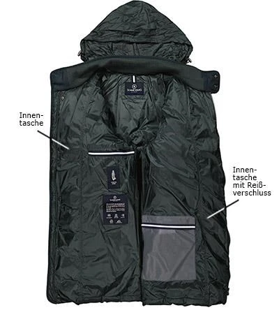 Eine Daunenjacke, die mit einem wasserabweisenden sowie winddichten Material begeistert. Eine Füllung aus Daune und Federn sorgt dabei für wärmende Trageeigenschaften. Eine verstaubare Regenkapuze sowie aufgesetzte 2 in 1-Taschen zeichnen das Modell aus. Investieren Sie in Ihre Wintergarderobe mit dieser komfortablen Jacke!