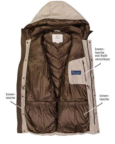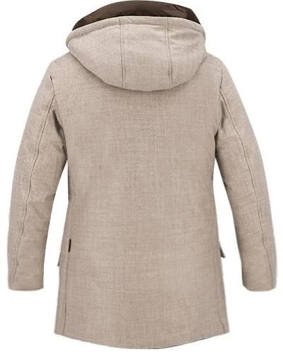 Erstklassige Verarbeitung und hochwertige Qualität zeichnen diesen Daunenparka aus, der aus einer exklusiven Schurwolle aus Italien gefertigt ist. Diese sorgt für wasserabweisende sowie winddichte Eigenschaften und vermittelt einen maximalen Tragekomfort. Das luxuriöse Modell ist zudem mit einer bequemen Kapuze sowie mit geräumigen Taschen praktisch ausgerüstet. Die verlässliche Jacke erweist sich definitiv als ein unverzichtbarer Bestandteil Ihrer Winter-Garderobe!